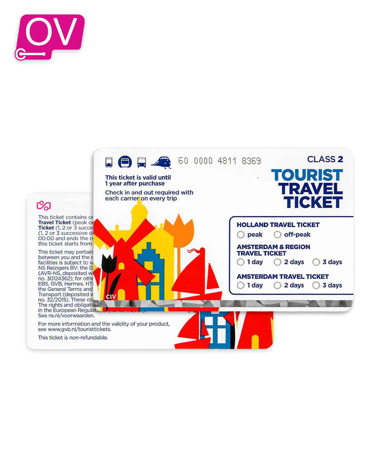 Deze dagkaart is de bestverkochte kaart voor toeristen die willen reizen vanaf Schiphol en Amsterdam gaan bezoeken.