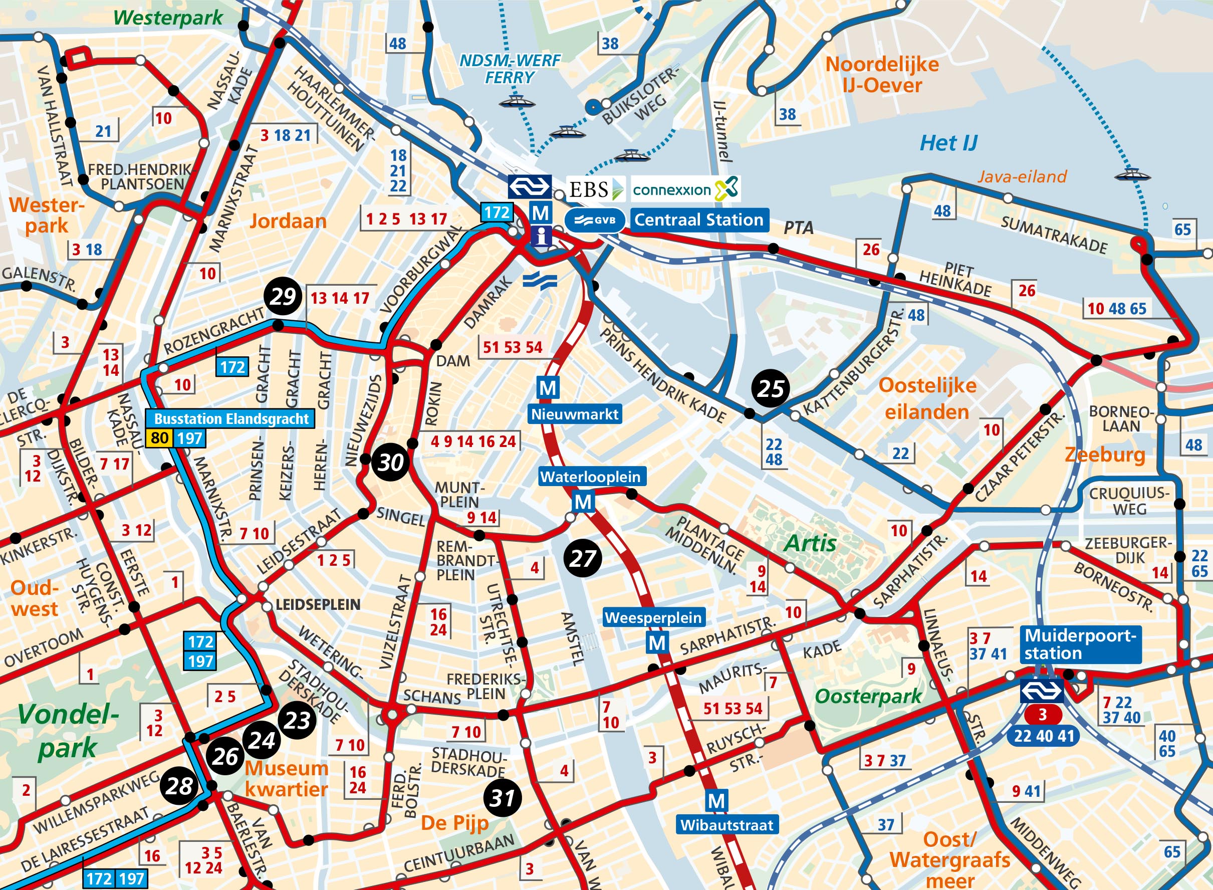 - Alle trams, bussen en metro’s van GVB, NS Schiphol -Amsterdam en Connexxion 397.