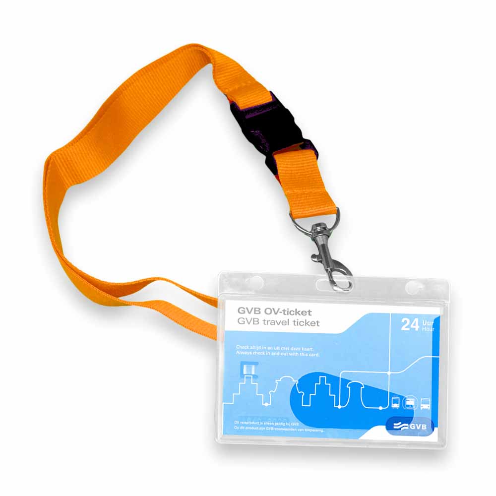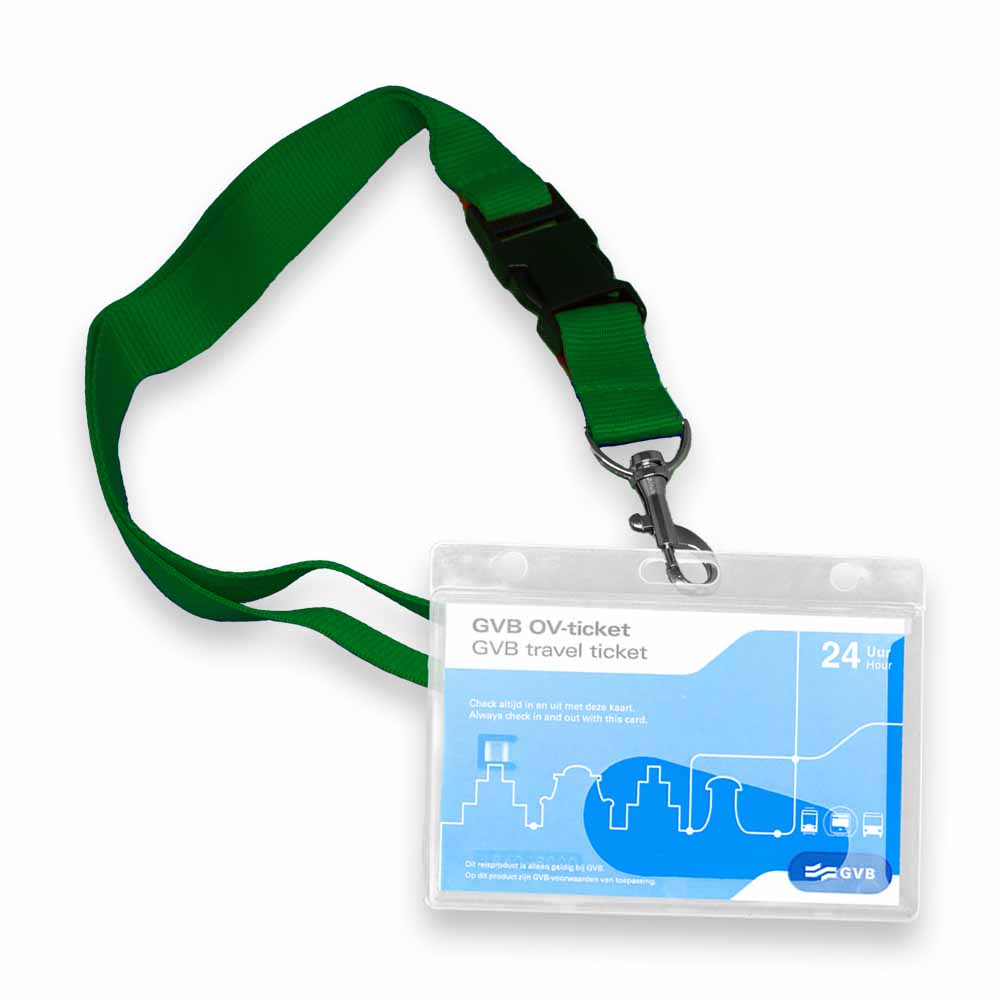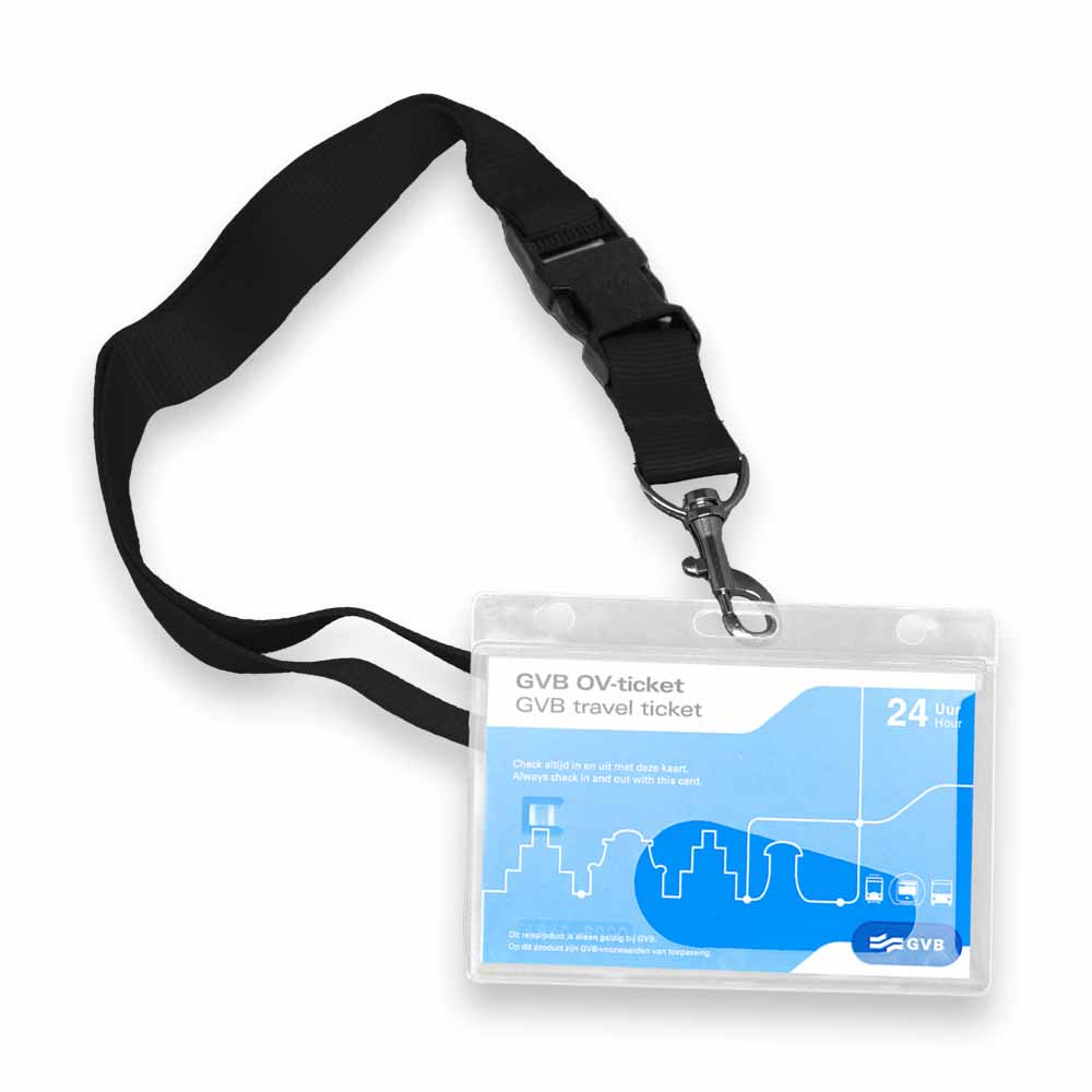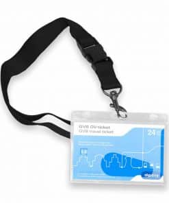 Dit draagkoord is gemaakt van stevig materiaal. Een OV-chipkaart hoes kan hier aan bevestigd worden met behulp van een haaksluiting. Je kan de hoes eenvoudig los klikken bij in- en uitchecken of wanneer je jouw OV-chipkaart wilt vertonen.