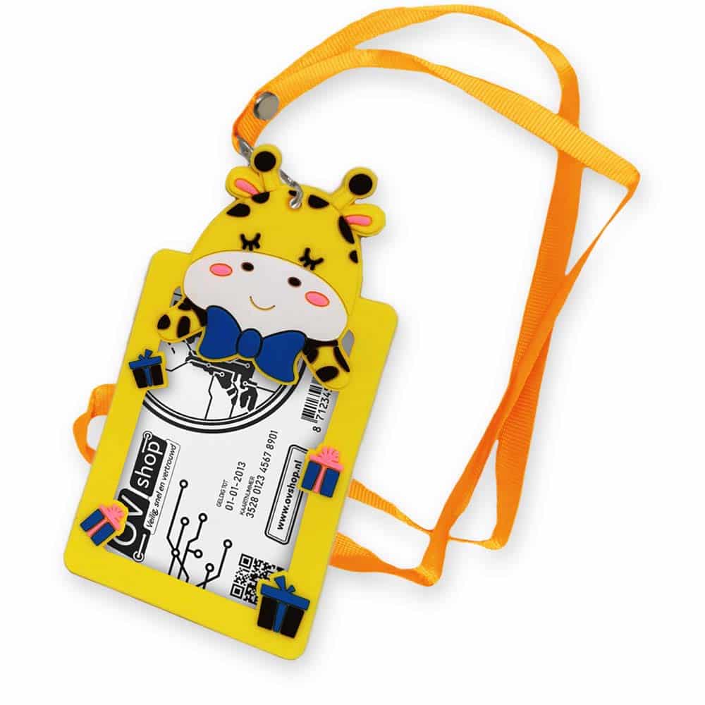 Deze OV-hanger Giraf Kado is gemaakt van (flexibel) onbreekbaar materiaal en past perfect bij een van de keycords die te vinden zijn in onze webshop. Tevens beschikt deze OV-hanger al van een lint met een haaksluiting.