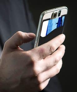 Naast deze standaard uitvoering van de zelfklevende pashouder hebben we ook een super handige uitvoering met een extra buigbare strip waarmee je je telefoon rechtop kunt zetten.