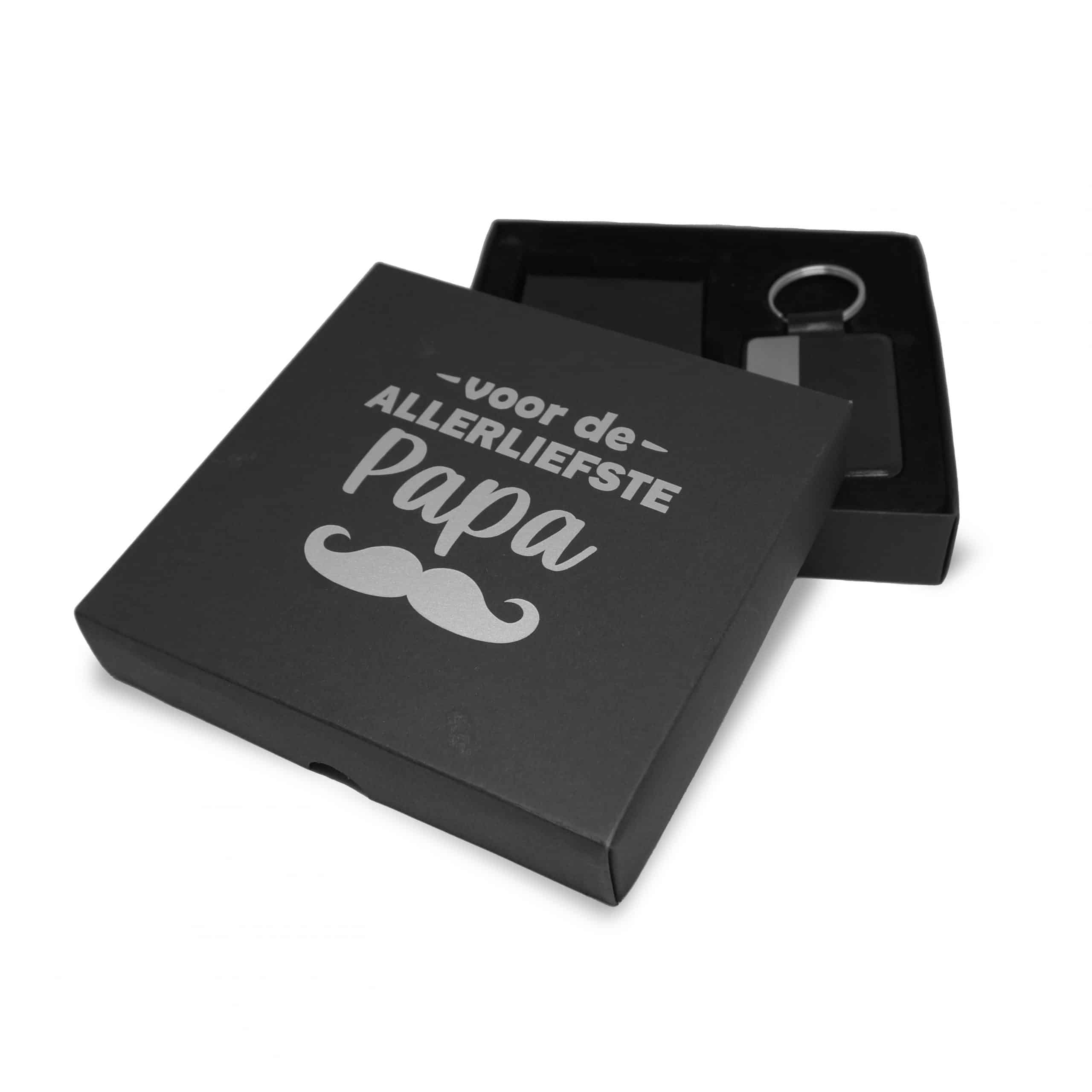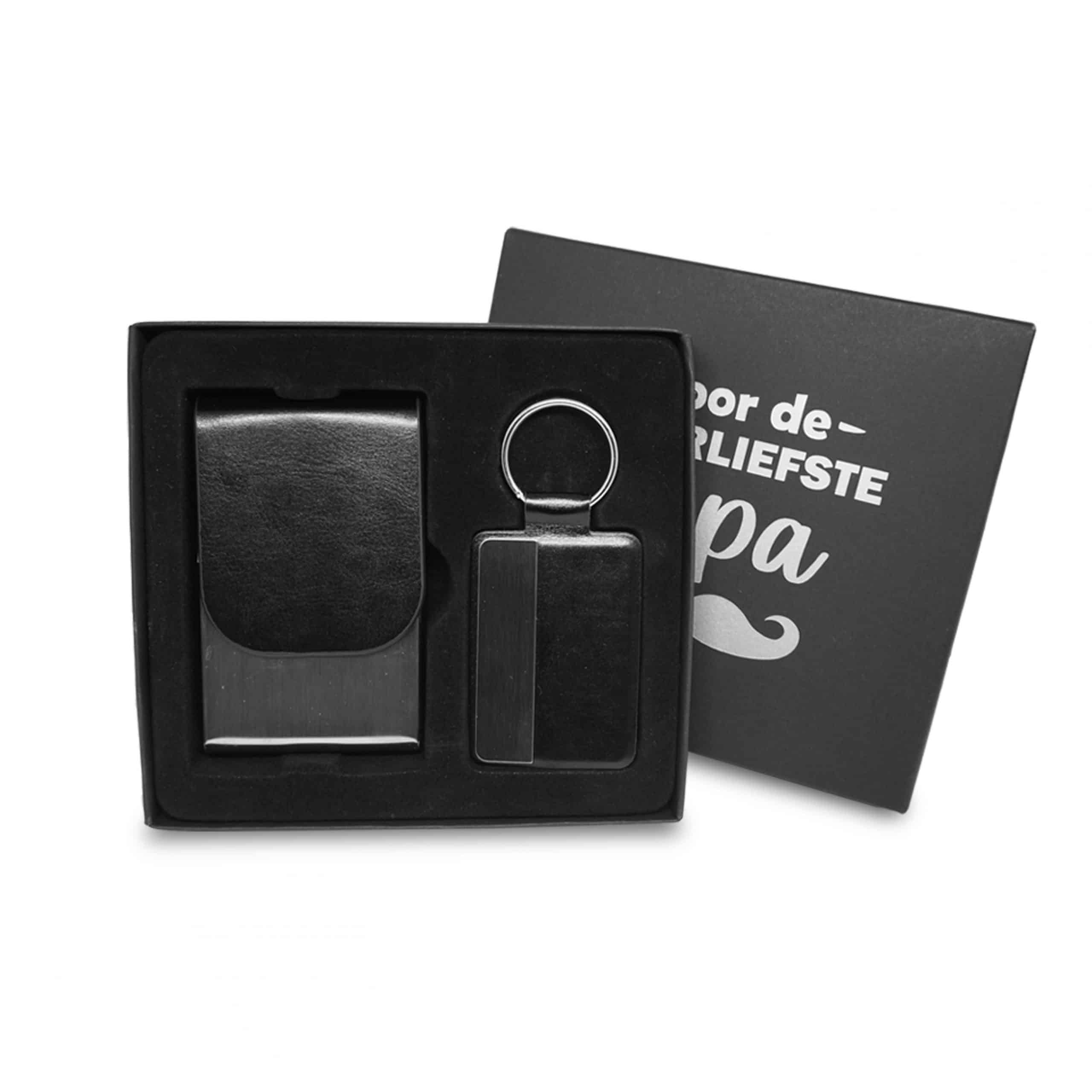 Zondag 16 juni is het Vaderdag, tijd om die vaders eens in het zonnetje te zetten. Daarom hebben wij een mooi geschenk set samengesteld. Een leerlook met aluminium sleutelhanger en bijpassende kaarthouder. Dit in een stoer en strak design waar de vaders zeker blij mee zullen zijn.